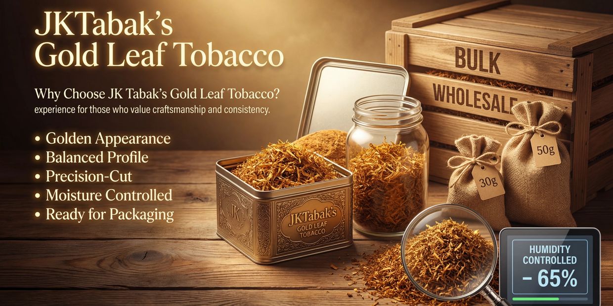 When quality, consistency, and presentation matter—JK Tabak’s Gold Leaf Tobacco is your premium solution. Whether you need 50g pouches for retail, bulk leaf for manufacturing, or a fully customized private label blend, we deliver excellence from the field to your finished product.