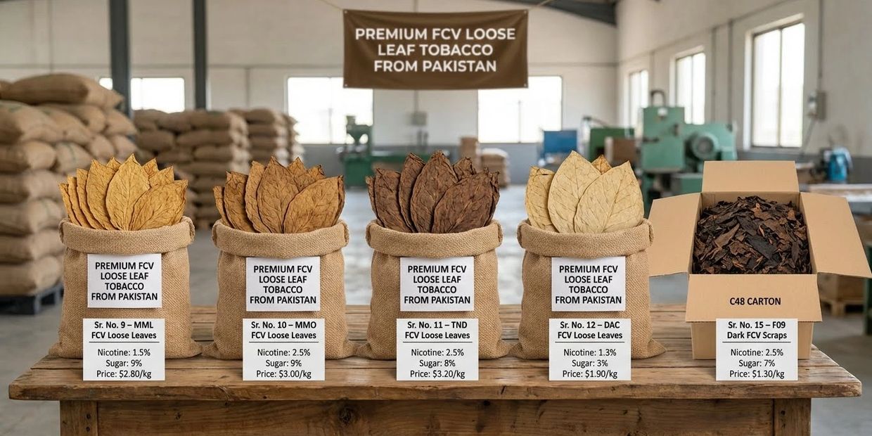If you're searching for high-quality loose tobacco with balanced strength and aroma, FCV Loose – TND from the 2026 crop is an ideal solution. Carefully grown and flue-cured in Pakistan, this Grade 1 tobacco leaf offers a nicotine content of 2.5%, along with a natural sugar level of 7%, providing the perfect combination of flavor and smoking smoothness.