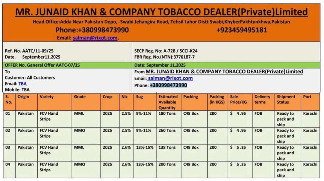 Quality Tobacco from PakistanQuality Tobacco from Pakistan